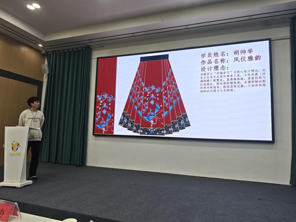员工们在山河锦绣研学基地开启系统化学习。在公司与企业技术骨干的指导下,员工们首先进行了汉服款式、色彩与图案的设计,继而深入生产一线,先后学习汉服从版型打样到剪裁缝制的全流程工艺,重点研究了马面裙的裙门工艺、褶裥处理及交领上衣的领口弧度设计、盘扣制作等核心技艺。期间,同学们认真记录工艺要点,积极向企业导师请教学习,最终完成了自己的汉服设计与制作。