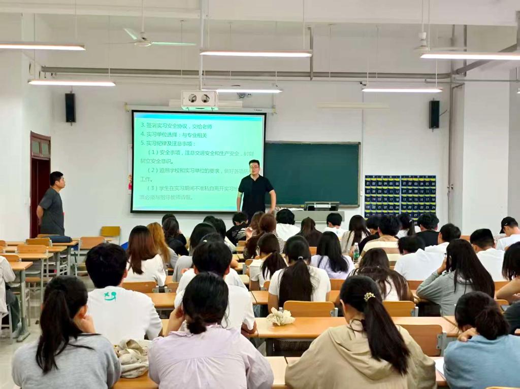 会上,实习指导教师团队围绕认知实习的核心意义与具体安排展开详细讲解。指导教师首先强调,认知实习是专业教学的重要组成部分,更是同学们从校园迈向社会、衔接未来就业的关键一步。指导教师指出,实习不仅是对课堂理论知识的实践验证,更是提升综合能力、树立职业认知的重要契机,要求同学们以严肃认真的态度对待,提前做好实习准备,严格遵守实习单位与公司的各项规章制度,全力完成实习任务。同时,指导教师特别关注实习安全与就业观念引导,提醒同学们在实习期间务必重视人身与财产安全,时刻保持警惕;并建议大家理性分析当前就业形势,端正择业心态,在实习岗位上主动学习、虚心请教,将踏实的作风融入实践,切实提升专业技能与职业素养。