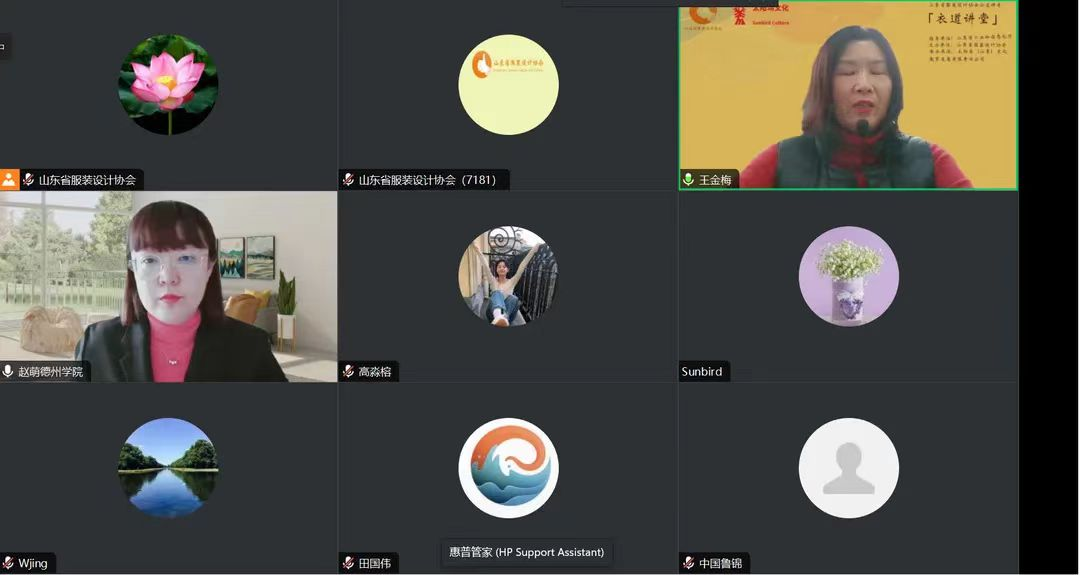 1月13日,由山东省服装设计协会和山东省鲁锦产业高质量发展联盟主办的《衣道讲堂》—“鲁锦专题”学术讲座在线上如期举办,9428cn太阳集团古天乐赵萌副教授和穆慧玲教授作为主讲人受邀参加讲座。