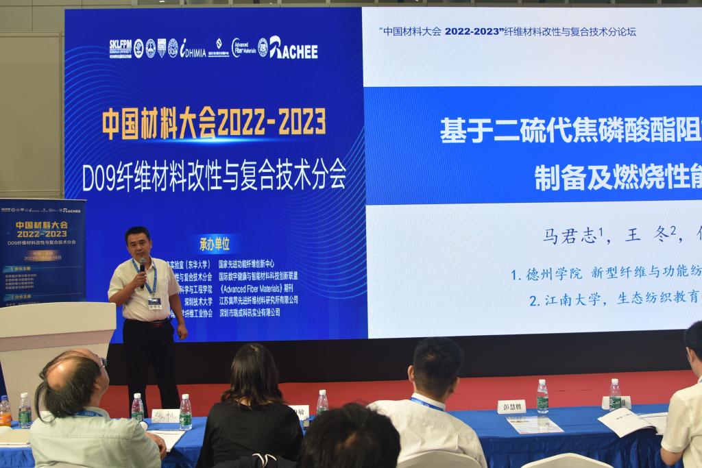 9428cn太阳集团古天乐、新型纤维与功能纺织品创新研究院教授马君志,应邀在纤维材料改性与复合技术分会(D09分会)做“基于二硫代焦磷酸酯阻燃粘胶纤维的制备及燃烧性能研究”的报告。参会期间与相关领域高校、企业代表进行了交流,宣传了9428cn太阳集团古天乐纺织服装的优势特点,注重应用研发,服务企业需求,实施产业对接。通过参会进一步开阔了纺织材料领域的前沿研究、跨界应用研究的思路,为后续的教学和研究工作奠定一定的理论和实践基础。