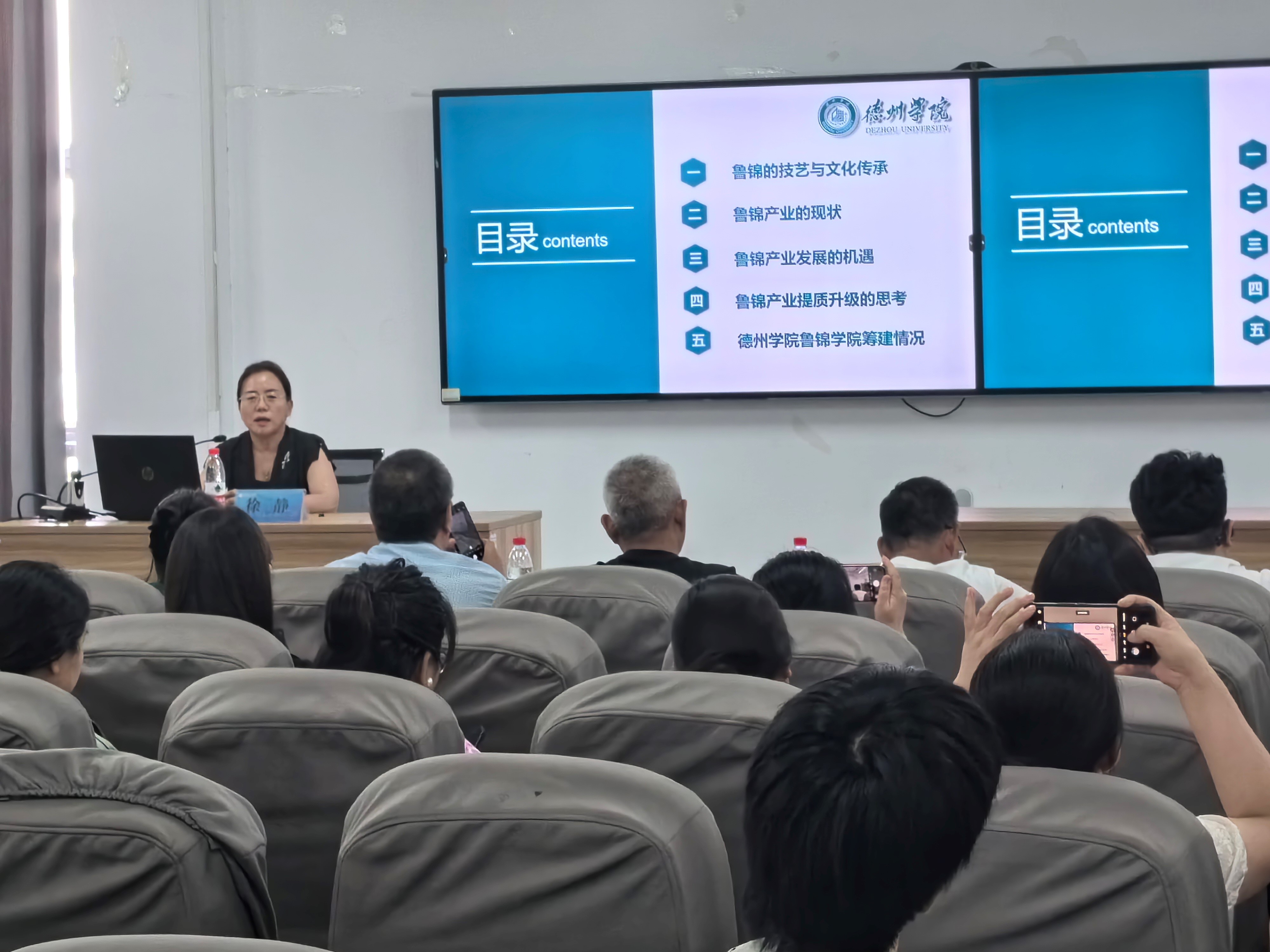 为深入贯彻落实省领导关于推动鲁锦产业高质量发展的指示精神,持续提升鲁锦传承人技能艺能,重塑鲁锦产业优势,加快产业创新发展,6月下旬,由工信厅主办的全省纺织服装产业数字化转型培训(鲁锦专题班)和文旅厅主办“中国非物质文化遗产传承人研修培训计划”鲁锦织造技艺研修班分别在济南开班。公司党委委员、副董事长徐静教授应邀在培训班上做专题讲座