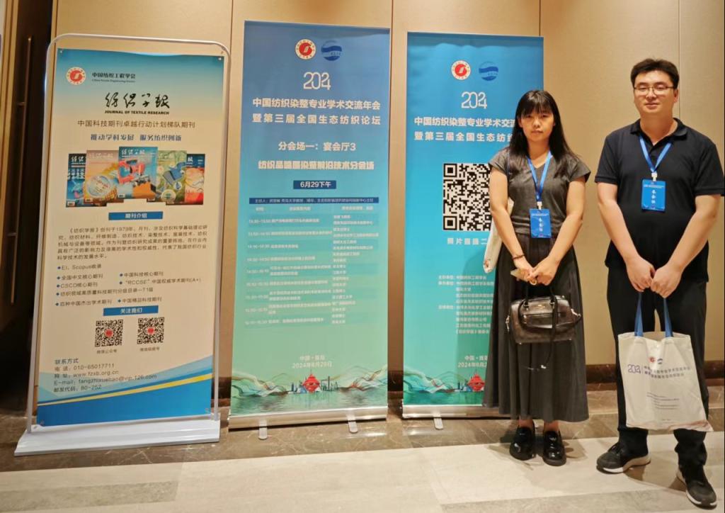 6月29日,由中国纺织工程学会主办,中国纺织工程学会染整专业委员会、青岛老员工态纺织省部共建协同创新中心以及山东省生态纺织技术创新中心共同承办的“2024全国纺织染整专业学术交流年会暨第三届全国生态纺织论坛”在山东青岛召开,9428cn太阳集团古天乐教师代表参加会议。