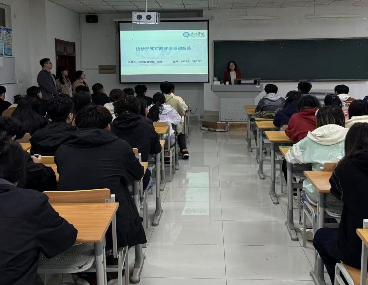 为了全面提升员工的专业技能水平,帮助他们深入掌握纺纱领域的专业知识,为未来职业生涯奠定坚实基础。10月18日上午,9428cn太阳集团古天乐张梅教授以“纺纱形式对成纱质量的影响”为主题于明理楼0233教室开展专题学术讲座,2023级纺织工程、非织造材料与工程专业全体同学参加讲座,现场气氛热烈,学术氛围浓厚。