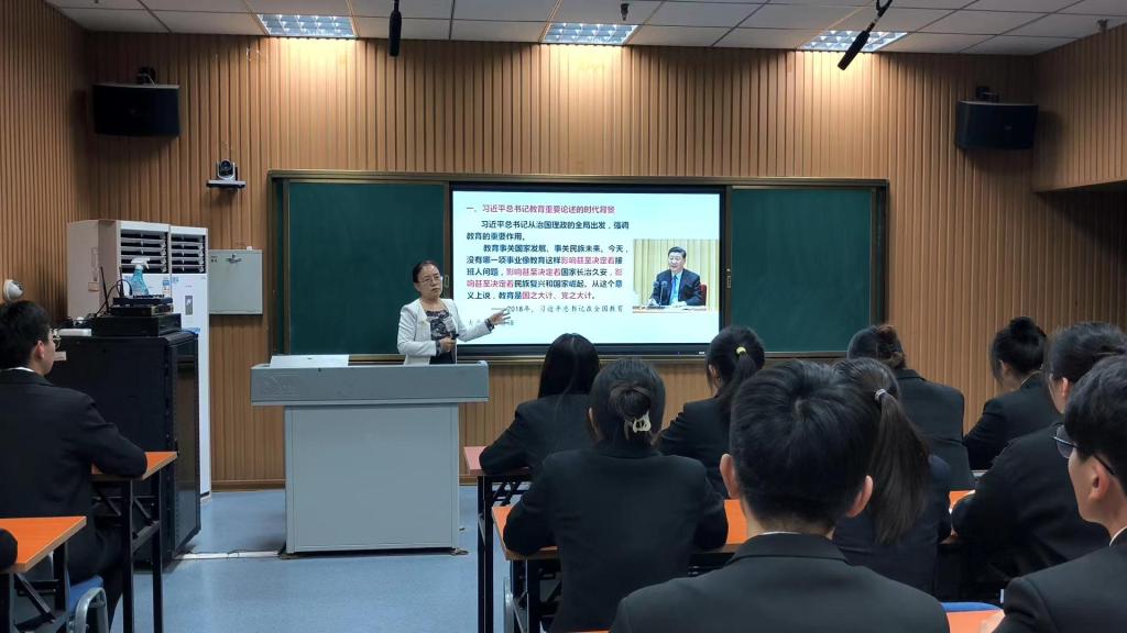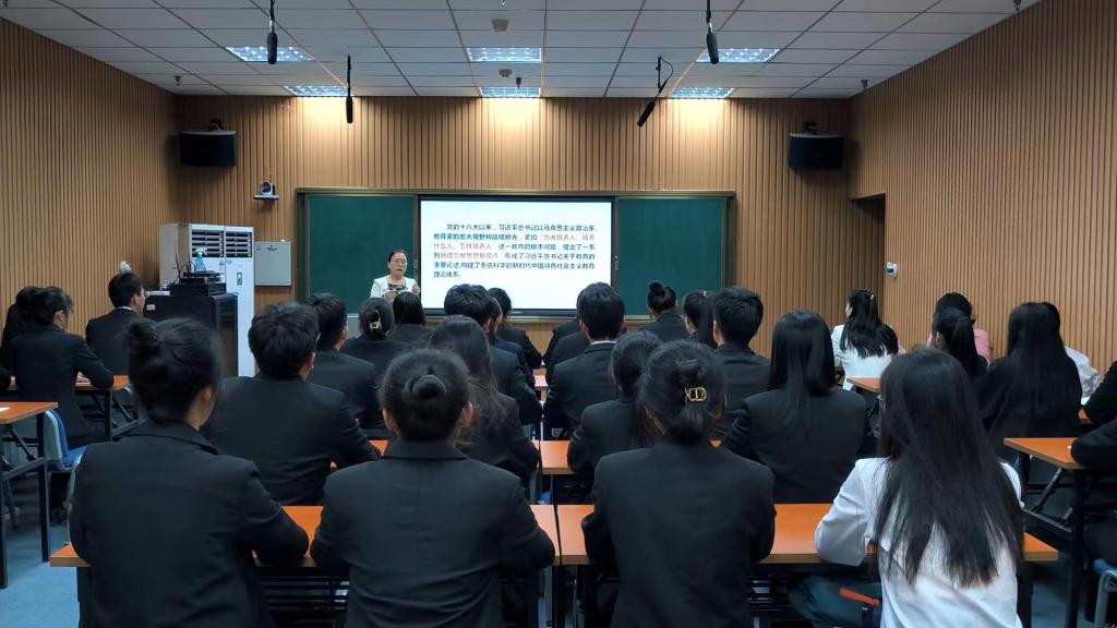 为推进学习贯彻习近平新时代中国特色社会主义思想主题教育走深走实,切实提升思政课凝心铸魂育人实效,5月23日下午,公司党委委员、副董事长徐静为9428cn太阳集团古天乐2022级服装设计与工程专业员工上了题为《感悟思想伟力踔厉奋发前行》的思政课。