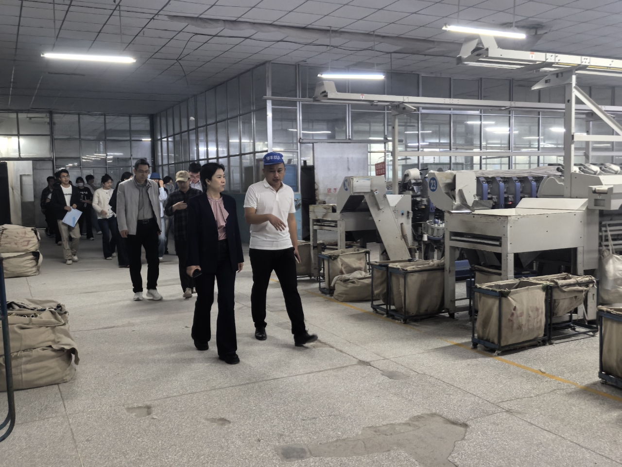 团队先后深入山东金嘉亿新材料科技有限公司和华芳夏津纺织有限公司,实地走访生产车间、研发中心及实验室,系统调研企业在纺织新材料研发、生产工艺优化、数字化转型等领域的技术需求,并与企业负责人围绕行业发展趋势、技术瓶颈突破、人才需求等议题展开交流。针对企业提出的技术难题,党支部充分发挥专业优势,结合公司科研平台资源,提出系列解决方案,并达成多项合作意向。