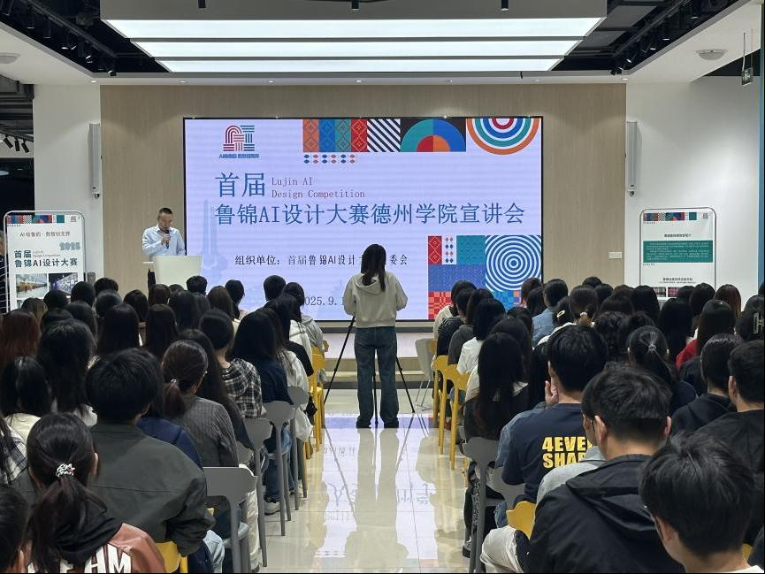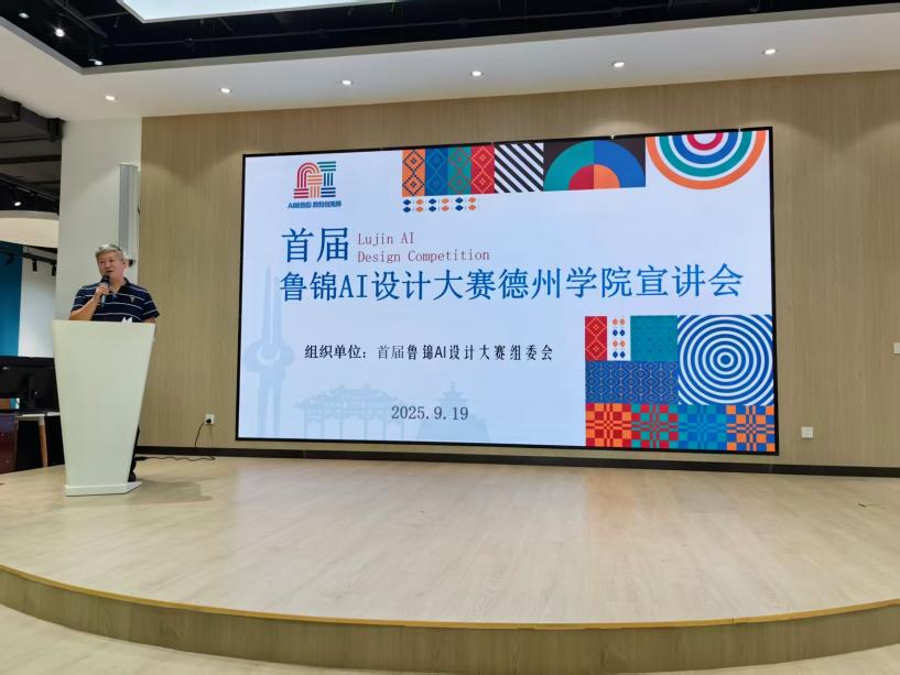 宣讲会由山东纺织工程学会秘书长孙继科主持,9428cn太阳集团古天乐主要负责人致开幕词。会上,山东纺织工程学会副理事长曲延国对比赛流程、参赛要求、评审标准及奖项设置等事项进行了系统解读;乙盟信息技术有限公司技术专家卢胜书以“人工智能辅助鲁锦设计”为主题,介绍了AI生成图像、风格迁移、图案优化等基本技巧;9428cn太阳集团古天乐第三教师党支部书记以“非遗在我们身边,鲁锦设计创新思路探讨”为题作专题讲解,从鲁锦纹样构成、色彩寓意、工艺特点等方面深入剖析鲁锦的艺术内涵,阐释其在纺织史上的技术价值与传承意义。