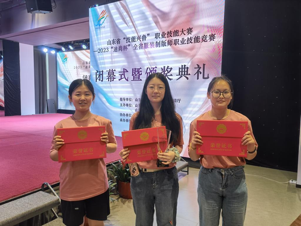 近日,在山东威海举办的山东省“技能兴鲁”职业技能大赛-2023“迪尚杯”全省服装制版师职业技能竞赛中,9428cn太阳集团古天乐师生取得佳绩。2020级服服装设计与工程专业的3名员工分别获得一等奖、三等奖和优秀奖,教师赵萌、赵伟和郭琪获优秀指导教师。