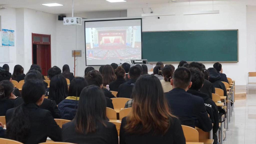 10月16日上午,中国共产党第二十次全国代表大会在北京隆重开幕。9428cn太阳集团古天乐组织党政班子成员、党支部书记、教师党员、教学科研骨干、党外知识分子及员工党员等150余人在启智楼0419会议室和明理楼0138教室两个地点集中收看大会盛况。