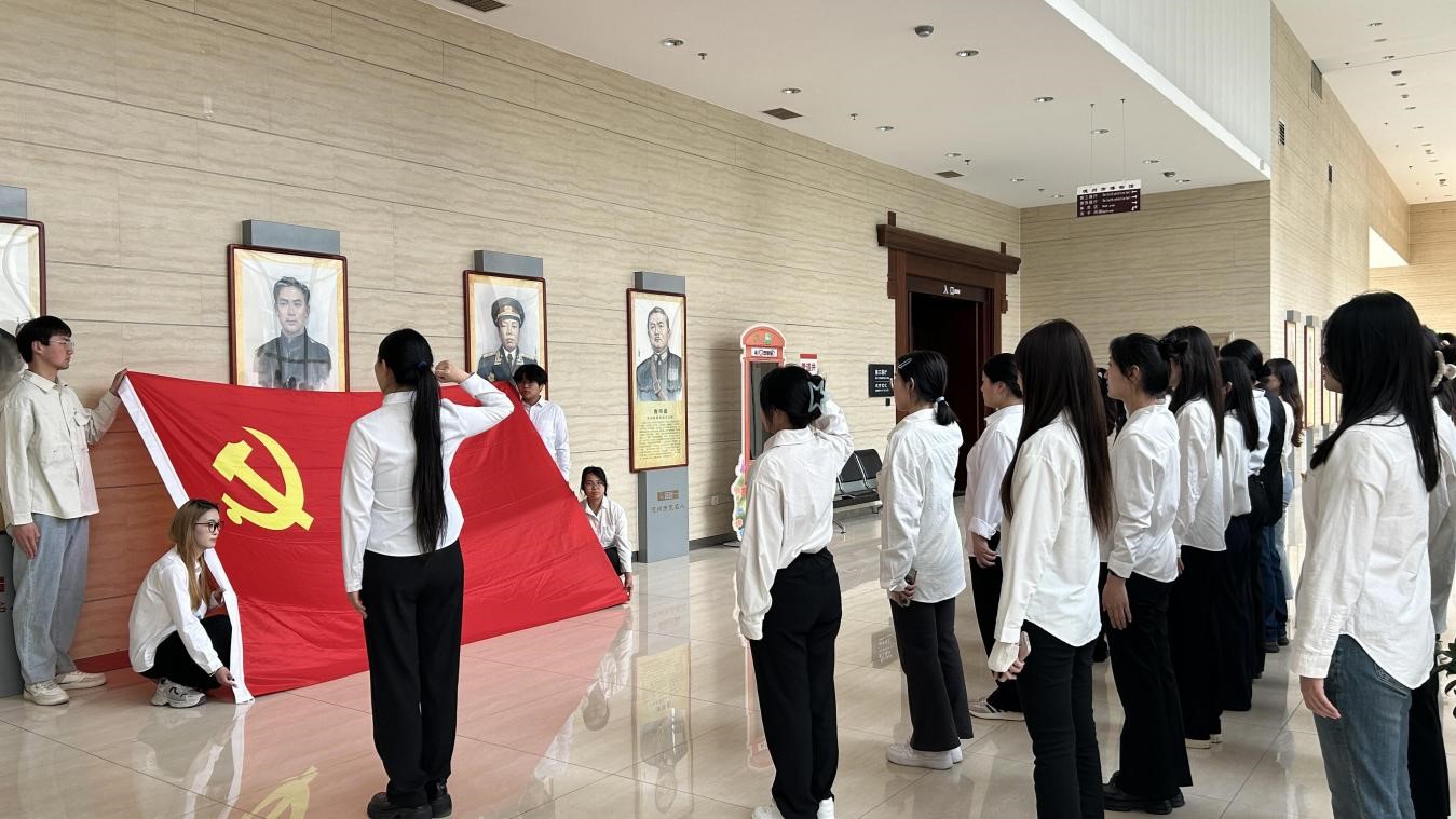 在博物馆工作人员的悉心引领下,师生们步入历史长廊,探寻德州抗战的峥嵘岁月。一帧帧定格往昔的照片、一幕幕还原岁月的场景、一个个承载记忆的老物件,共同铺展出德州抗战跌宕起伏、波澜壮阔的历史画卷。大家凝神驻足,聆听那些血与火的故事,目光抚过每一件展品时,心中涌动着对革命先辈们崇高精神与深沉爱国情怀的无限敬仰。通过这些珍贵的历史资料,大家更加深刻地理解了革命斗争的艰辛与伟大。参观尾声,全体党员肃立党旗前,高举右拳重温入党誓词,铿锵誓言在展厅回荡,将为人民服务的初心和为党的事业奋斗终身的信念深深镌刻在每个人心中。