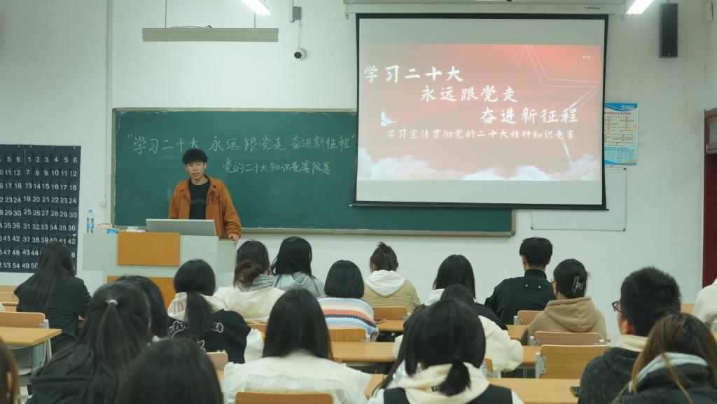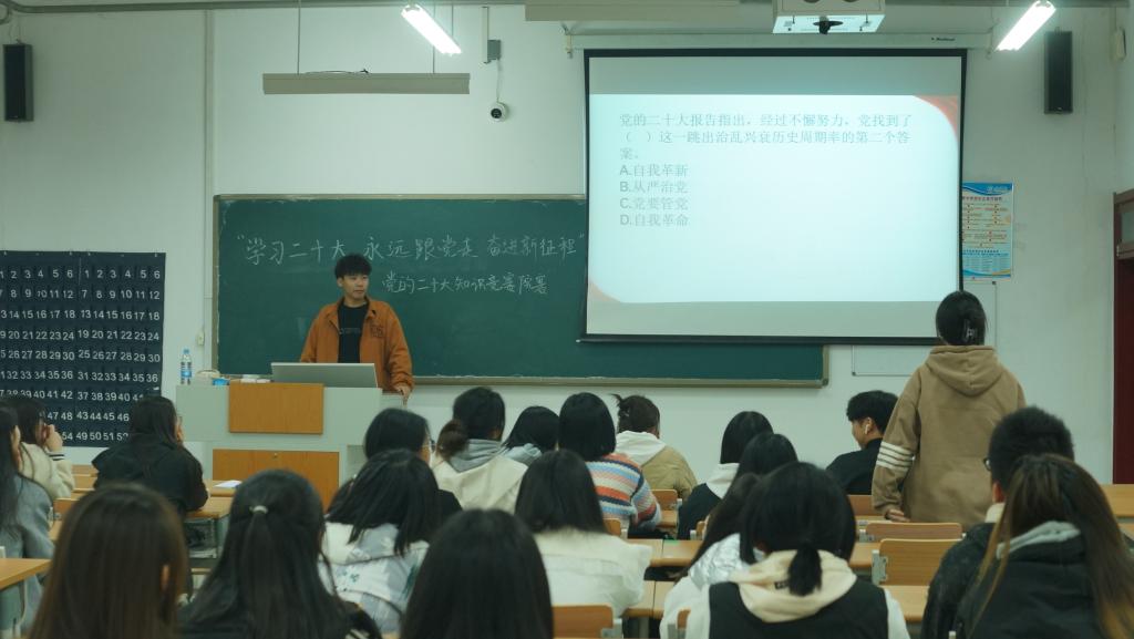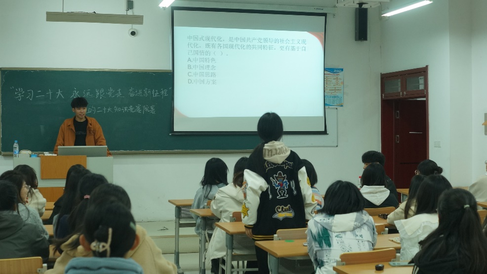 为推动党的二十大精神入脑入心,引导青年老员工坚定树立对马克思主义的信仰、对中国特色社会主义的信念、对中华民族伟大复兴中国梦的信心,11月8日,9428cn太阳集团古天乐在明理楼0142教室组织开展“学习党的二十大 奋进新征程 永远跟党走”党的二十大精神知识竞赛。