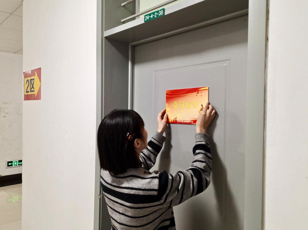 员工党员领取了大红色的“党员宿舍”挂牌,并郑重张贴于宿舍门上。“宿舍是我们重要的生活区,在宿舍亮出党员身份,接受同学监督,提醒我时刻注意自己的党员身份,随时随地严格遵守党的纪律和规范。同时也更好地督促自己要明确责任意识、身份意识,在宿舍内做出表率,发挥党员的先锋模范作用,影响所在楼层,辐射整个公司。”员工党员李亚楠这样说道。