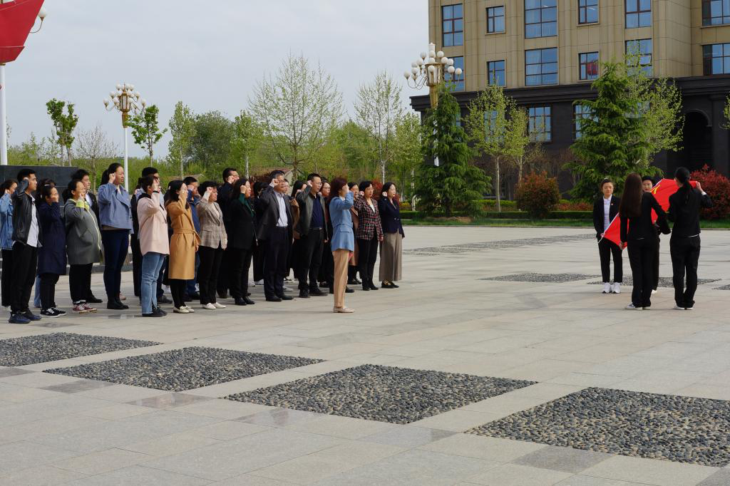 随后,参会党员来到腾飞广场进行重温入党誓词、入党宣誓活动。大家面对鲜红的党旗,进行庄严宣誓,表达了广大党员坚定理想信念,不忘初心,立足岗位敬业奉献的决心和信心。