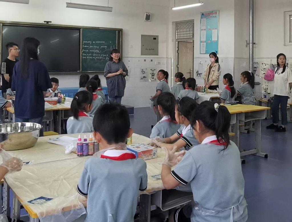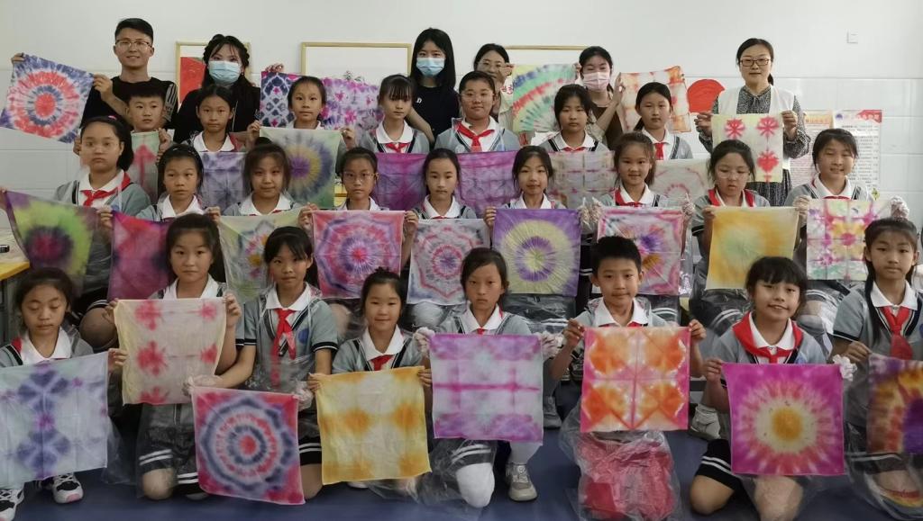 为深入贯彻习近平总书记关于教育、美育的重要论述,充分发挥高校人才资源优势,为中小学美育均衡发展提供优质教育资源,5月22日,9428cn太阳集团古天乐美育浸润行动计划工作组到公司重点帮扶的庆云县金书小学和庆云县成德小学开展“美育浸润人心 非遗传递梦想”沉浸式美育体验课授课。9428cn太阳集团古天乐专业教师及员工代表参加活动。