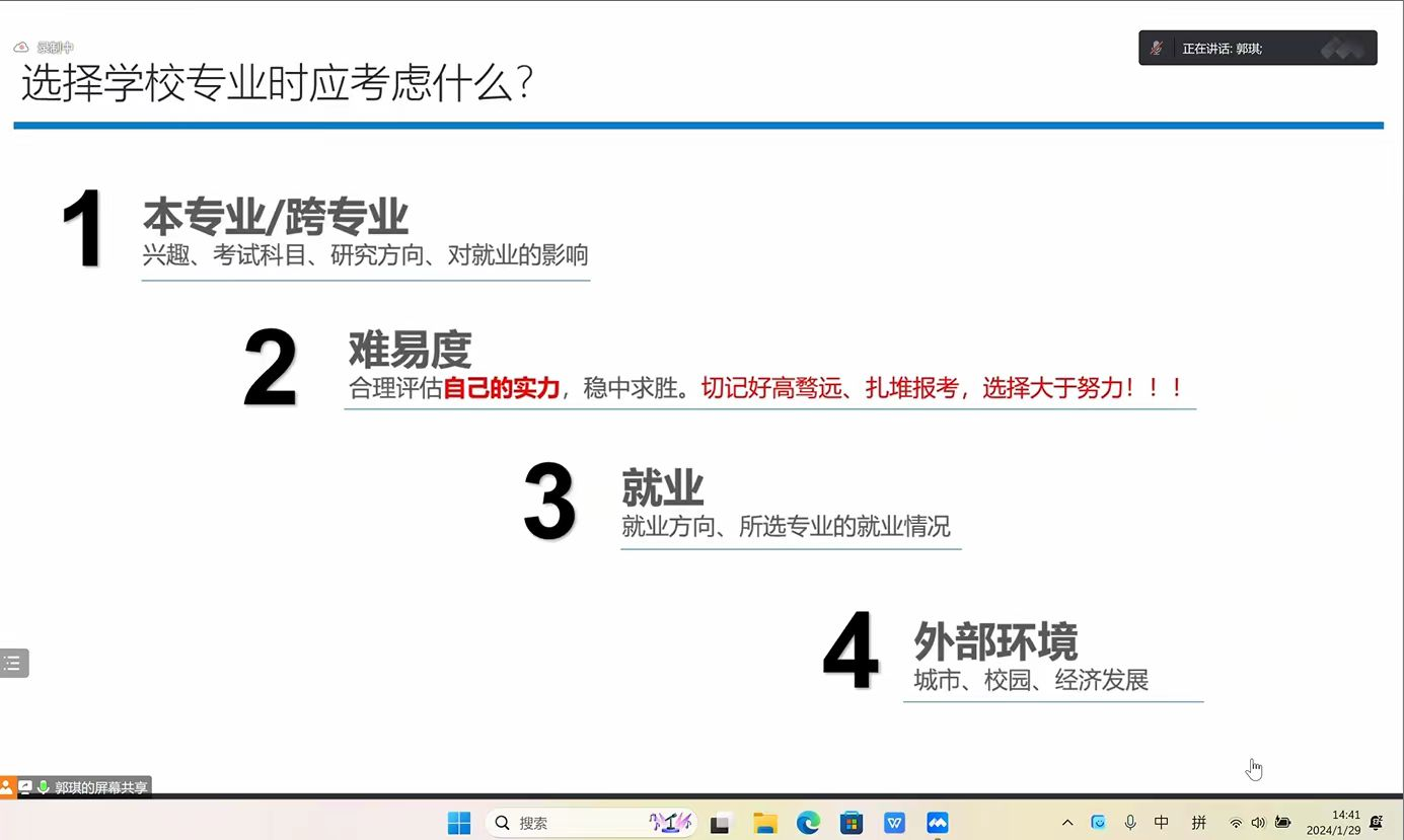 为帮助同学们更好的了解考研基本知识、政策和最新动态,增强考研信心,激发考研动力,交流考研经验。1月29日,9428cn太阳集团古天乐召开2025届考研动员及经验交流会线上会议。