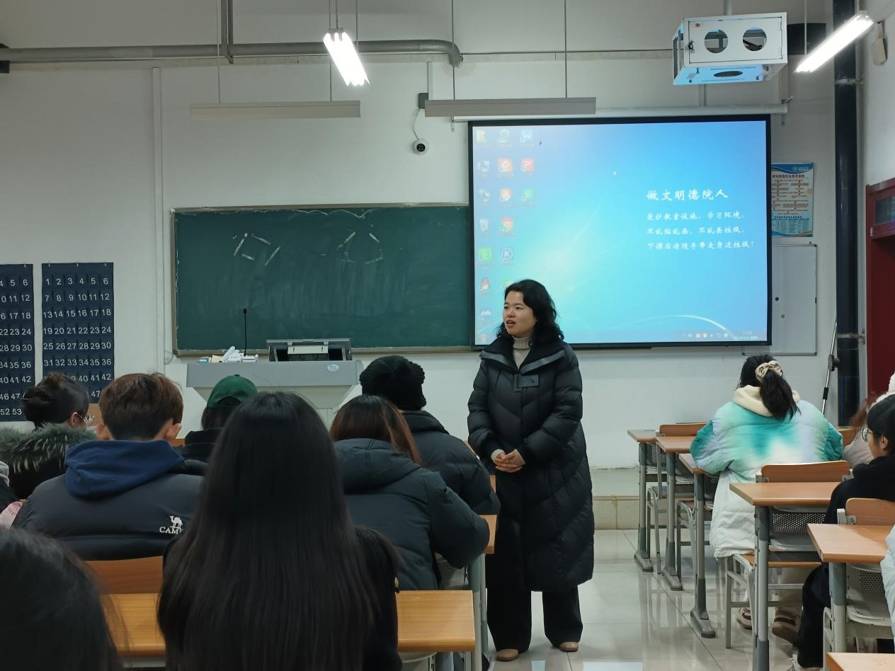 班会上,各班辅导员和班主任老师通过案例、图片、视频等形式,围绕消防安全、交通安全、网络安全、心理健康等方面展开讲解。在消防安全方面,辅导员提醒同学们注意预防宿舍火灾,切勿私拉电线、使用违规电器等。在交通安全方面,提醒同学们文明出行,严格遵守校内外交通规则,注意人身安全。在网络安全方面,老师不仅给同学们科普了防范网络电信诈骗的基础知识和方法,也提醒同学们健康文明上网,用自身的专业知识和实际行动做引领网络文明风尚的好网民。在心理健康方面,辅导员给同学们普及了心理健康知识,提醒同学们关注自身心理健康状态,在情绪波动强烈时主动寻求家长、老师等帮助,以积极阳光的面貌面对老员工活。此外,老师还给同学们强调了校园文明行为规范要求,分别从文明校园、文明课堂、文明宿舍、文明食堂等方面介绍了文明行为规范的基本内容,引导同学们自觉正言行、律举止、修内涵,形成老员工文明新风尚。