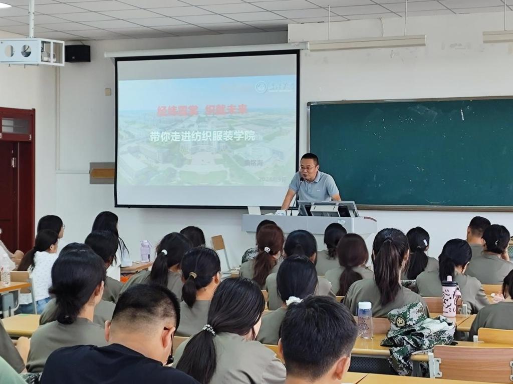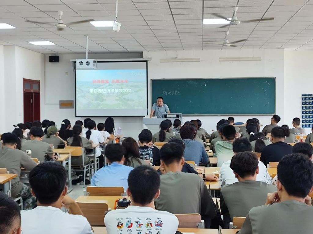 会上,公司经理以《经纬霓裳 织就未来》为题,从公司的历史沿革谈起,介绍了公司的教学理念、专业设置、团队力量、校企合作和硬件设施等情况,并从思想引领、专业设置、培养特色、专业认知、职业生涯规划等方面进行授课,他强调,党的二十大中明确了新时代新征程党和国家事业发展的目标任务,广大青年要坚定不移听党话、跟党走,怀抱梦想又脚踏实地,将个人理想和国家富强、社会发展相结合,立好纺服人的志、守好纺服人的心、做好纺服人的贡献。