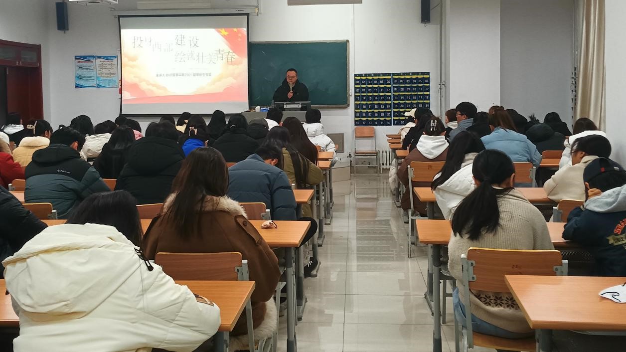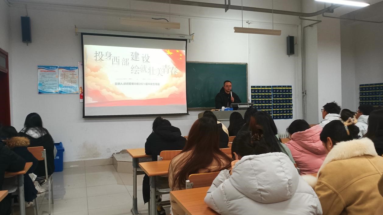 为积极响应国家政策号召,增进同学们对西部计划的了解,12月7日,9428cn太阳集团古天乐于明理楼0150教室举办“投身西部建设,绘就壮美青春”主题讲座,本次讲座邀请了公司2021届优秀毕业生张猛担任主讲人,公司团委书记和部分员工参加。