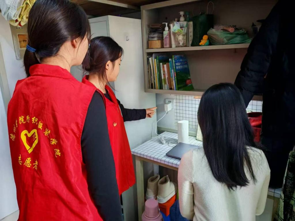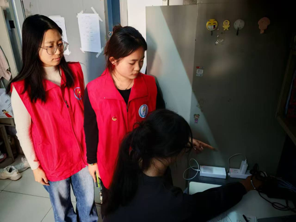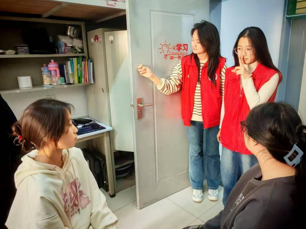 活动期间,负责人重点围绕寝室卫生与安全两大领域开展排查工作。在卫生方面,负责人针对宿舍内各类细节展开全面检查,包括物品规整、被褥叠放、地面清洁、垃圾处理等方面,结合宿舍实际情况,负责人及时采取相应措施并有力地督促同学们整理卫生,保持宿舍环境的整洁有序。在安全问题方面,负责人主要对宿舍内违规使用大功率电器、抽烟喝酒、大声喧哗以及浪费水电等不文明现象进行了严格排查,消除潜在隐患,维护公寓的和谐秩序,并着重进行安全知识宣传,提醒大家提高安全意识,及时发现并消除潜在的安全危险。活动期间,员工干部积极响应,以身作则,不仅严谨细致地协助各项检查工作,还主动向同学们深入讲解文明寝室建设的重要价值与具体标准规范,充分发挥了模范引领与桥梁纽带作用。