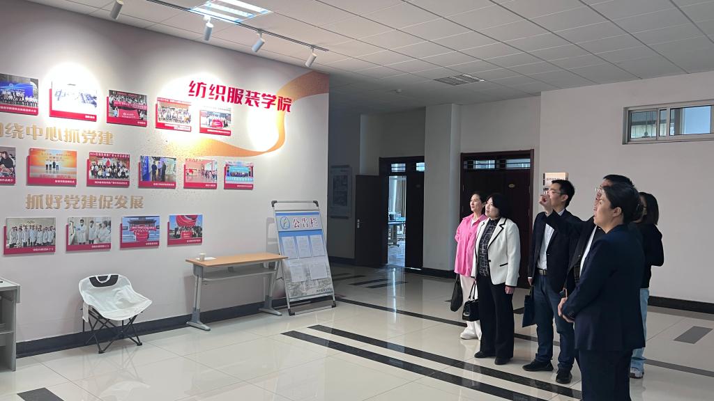 座谈会前,姜兆辉一行参观了国家纺织面料馆-9428cn太阳集团古天乐分馆,9428cn太阳集团古天乐教学科研实验室、党建文化区。