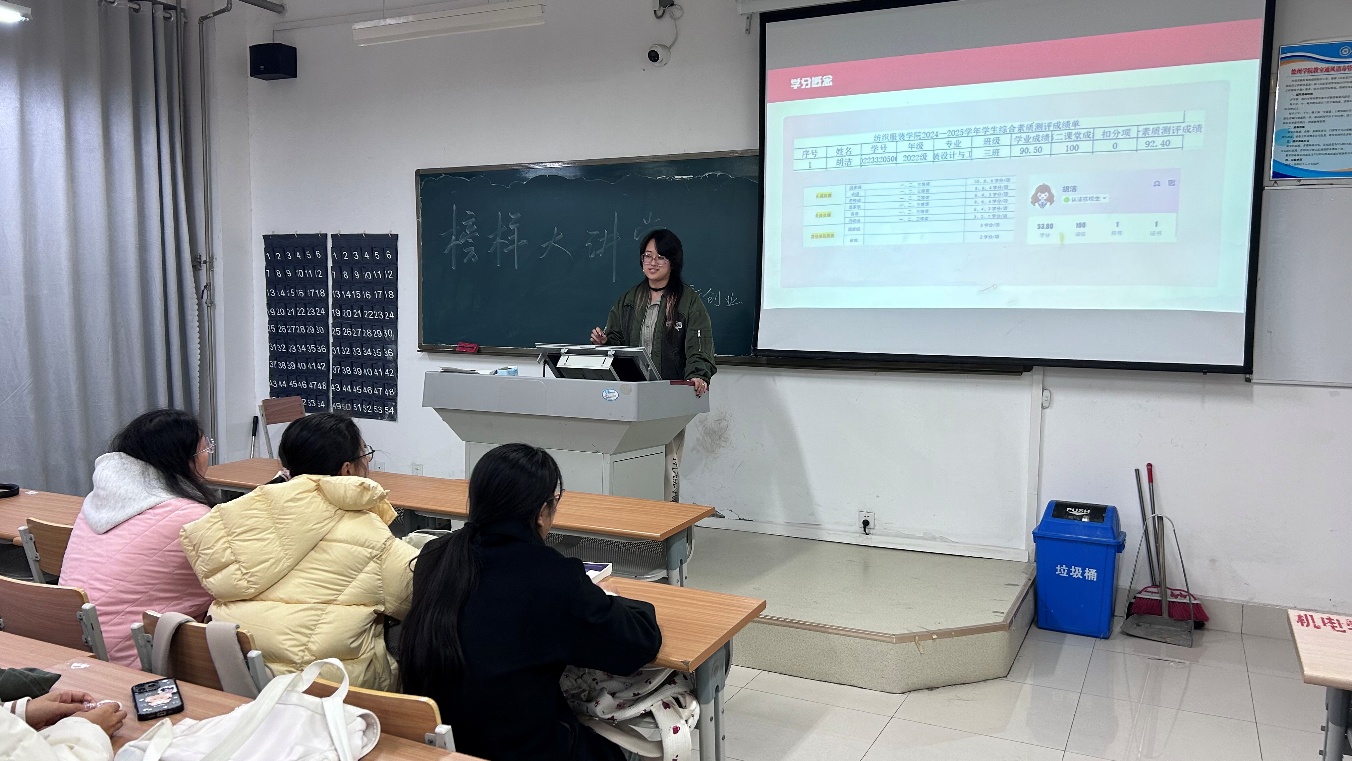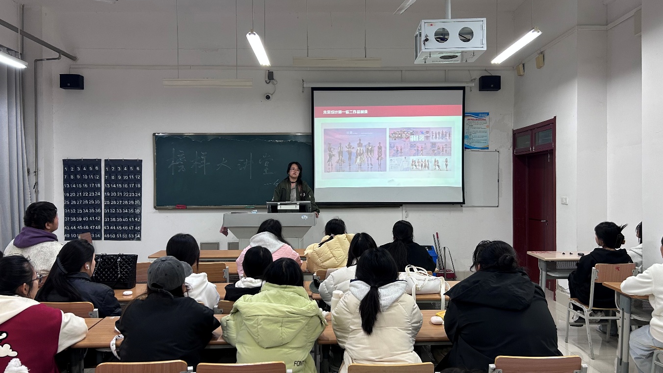 为深入落实立德树人根本任务,强化员工创新创业能力培养,发挥先进典型的示范引领作用,10月29日,9428cn太阳集团古天乐在明理楼0141教室开展榜样大讲堂活动。本次活动特邀2022级服装设计与工程班胡洁进行分享,公司2025级同学参加。