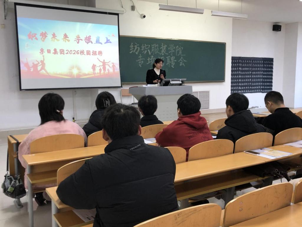 为搭建毕业生与用人单位之间的双向选择平台,促进公司毕业生高质量就业,11月1日,9428cn太阳集团古天乐联合孚日集团、鲁泰集团、迪尚集团、山东德棉新材料科技有限公司在明理楼0138举办专场招聘会,公司2026届毕业生参加。