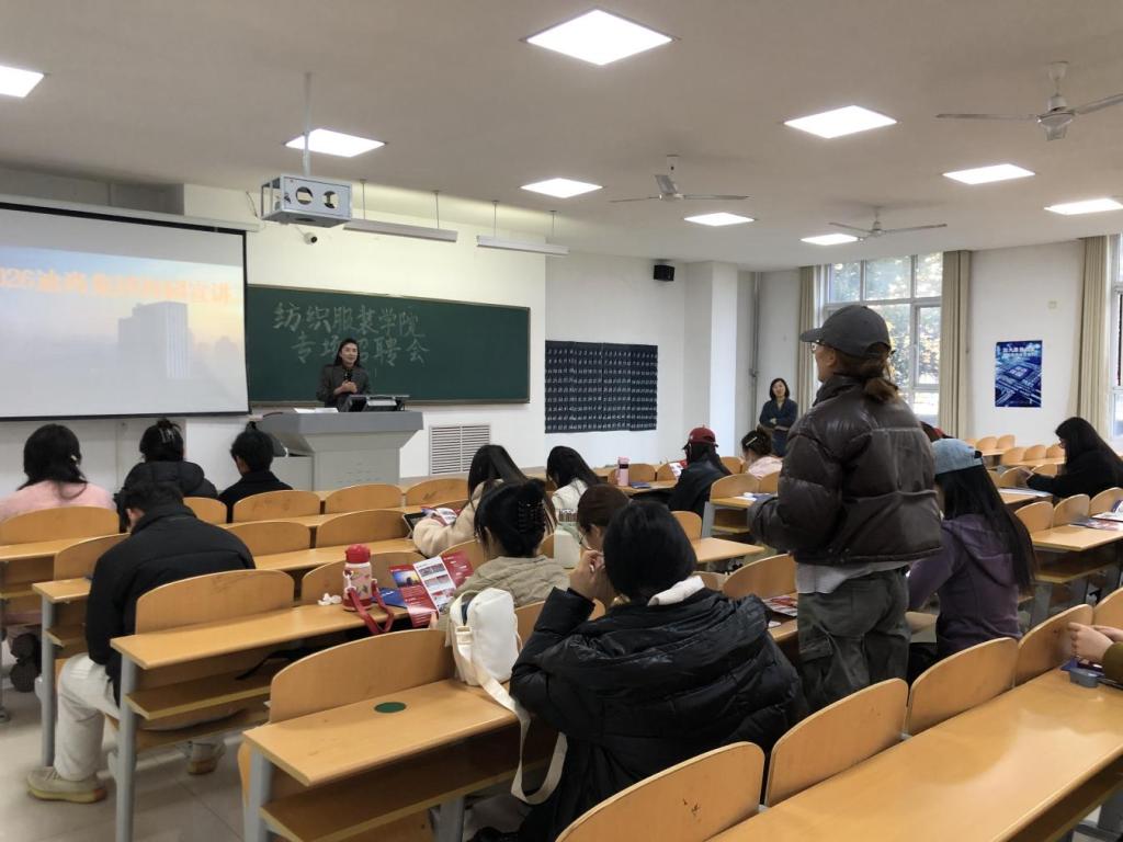 4家用人单位共提供了涵盖工艺研发、生产管理、技术品控及对外贸易等领域的多类优质岗位,人才需求精准对接公司服装设计与工程、服装与服饰设计、纺织工程等专业。会上,各企业通过发放宣传册、播放宣传片、宣讲PPT等方式,向毕业生介绍了关于我们、岗位职责、薪酬福利与发展前景,并针对同学们普遍关注的工作内容、培训体系与晋升机制等问题进行了耐心细致的解答,鼓励毕业生积极投递简历,把握就业机会。会后,同学们根据自身专业与职业规划,踊跃向目标企业提交个人简历,双方就具体岗位的技能要求、职业发展可能性等话题进行了深入交流。