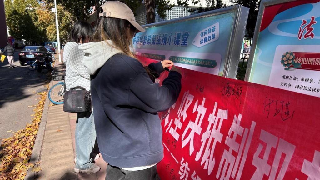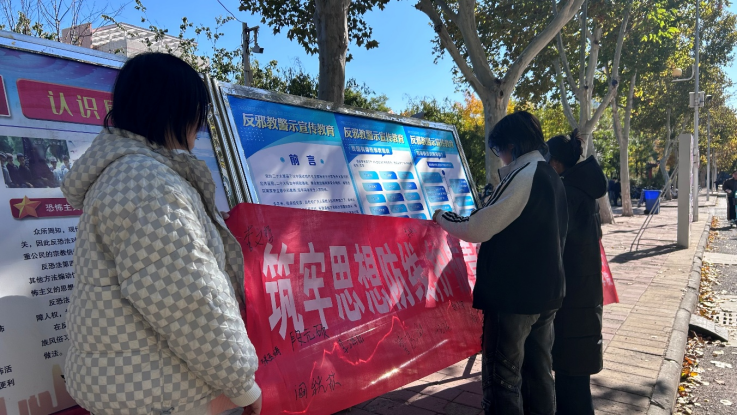 在反邪教主题展板前,同学们一同了解了与反邪教相关的案例、法律知识及防范要点等内容。展板深刻揭示了邪教的本质特征与社会危害,展现了邪教对个人、家庭及社会造成的危害,参观员工不时交流讨论,对邪教的欺骗性和危害性有了更加直观的认识。随后,师生们在“筑牢思想防线,护航青春成长,坚决抵制邪教!”主题横幅上郑重地签下自己的名字做承诺,一个个签名不仅代表了他们抵制邪教的决心,更彰显了共同维护校园和谐稳定的责任担当。结束后,同学们纷纷表示,通过这次参观活动,进一步认清了邪教的邪恶本质与现实危害,提升了他们辨别邪教的能力,在今后的学习生活中,将自觉做科学精神的弘扬者、文明校园的守护者。