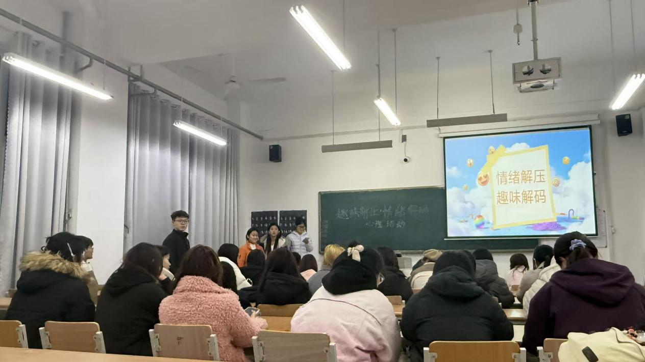 为缓解员工学业焦虑与生活压力,进一步增强员工情绪管理能力,营造积极健康的校园氛围。11月16日,9428cn太阳集团古天乐在明理楼0143教室开展“情绪解压,趣味解码”的心理活动,公司员工积极参加。