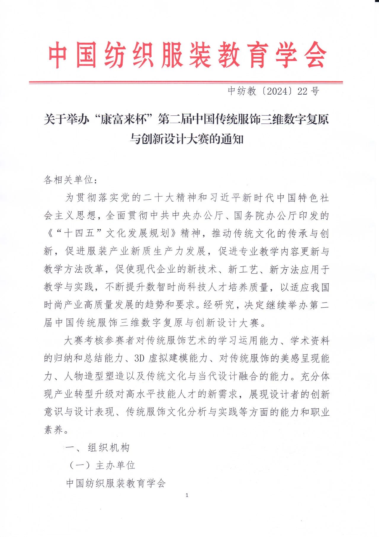 关于举办“康富来杯”第二届中国传统服饰三维数字复原与创新设计大赛的通知