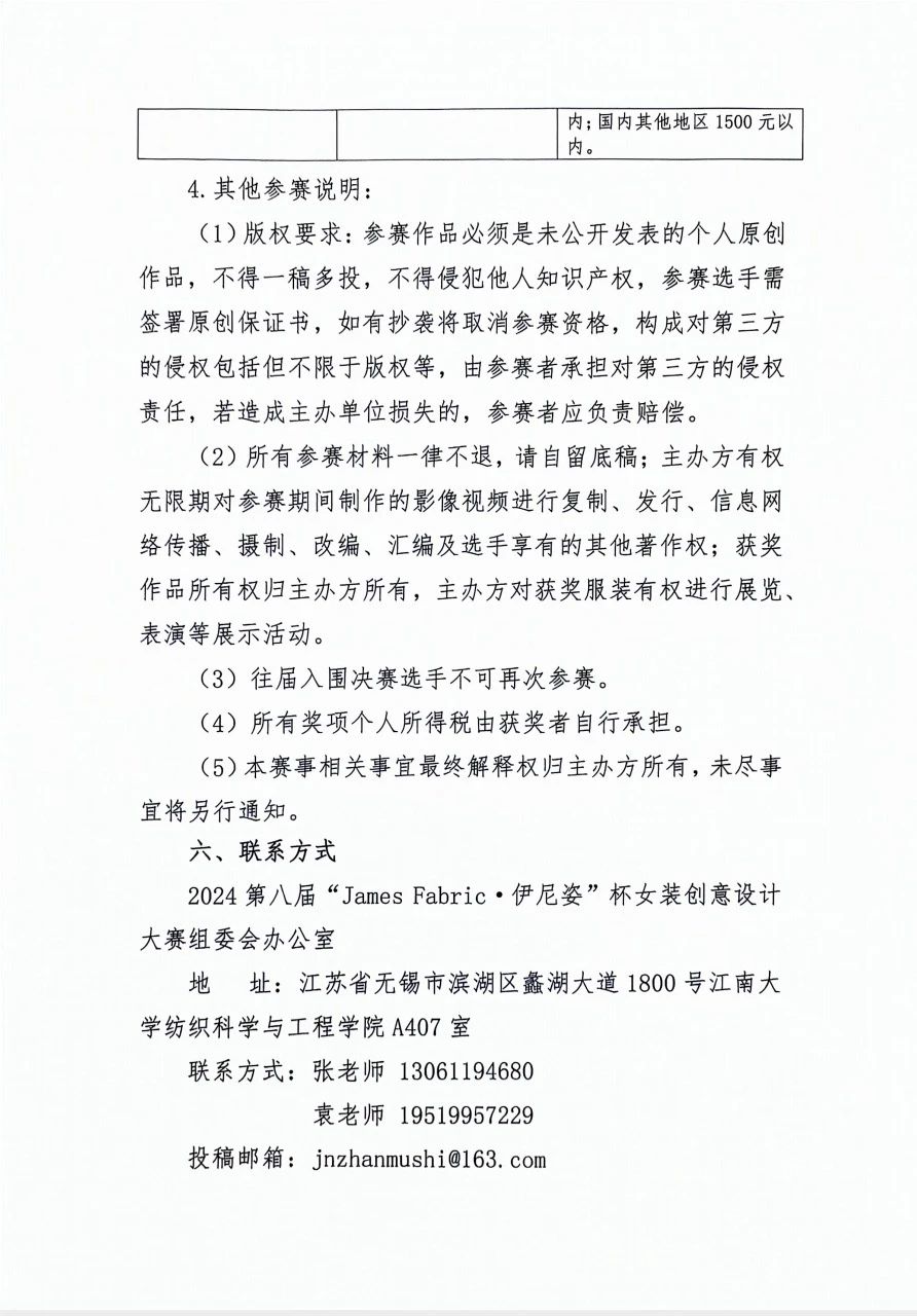 关于举办第八届“James Fabric·伊尼姿”杯女装创意设计大赛的通知
