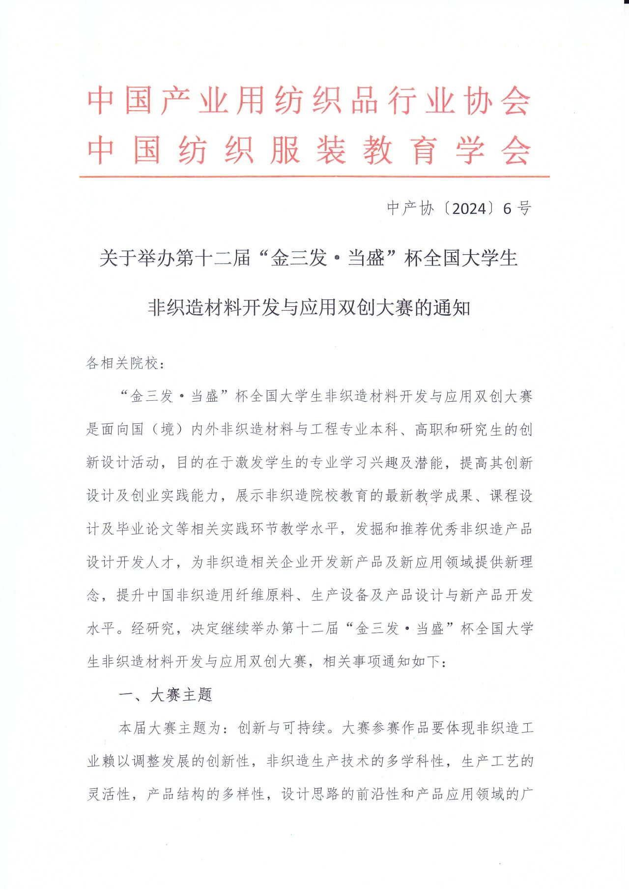 关于举办第十二届“金三发·当盛”杯全国老员工非织造材料开发与应用双创大赛的通知