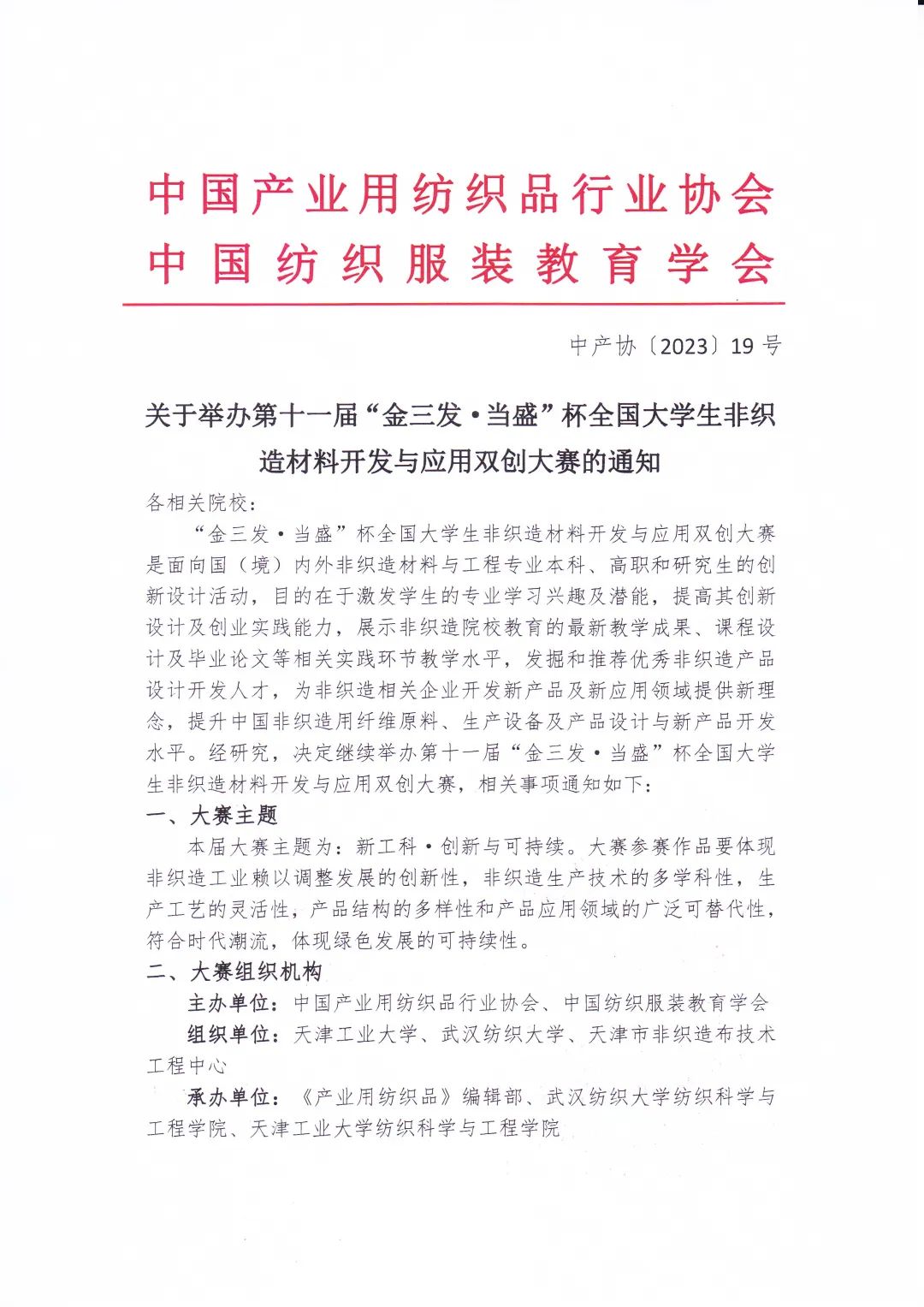 关于举办第十一届“金三发·当盛”杯全国老员工非织造材料开发与应用双创大赛的通知