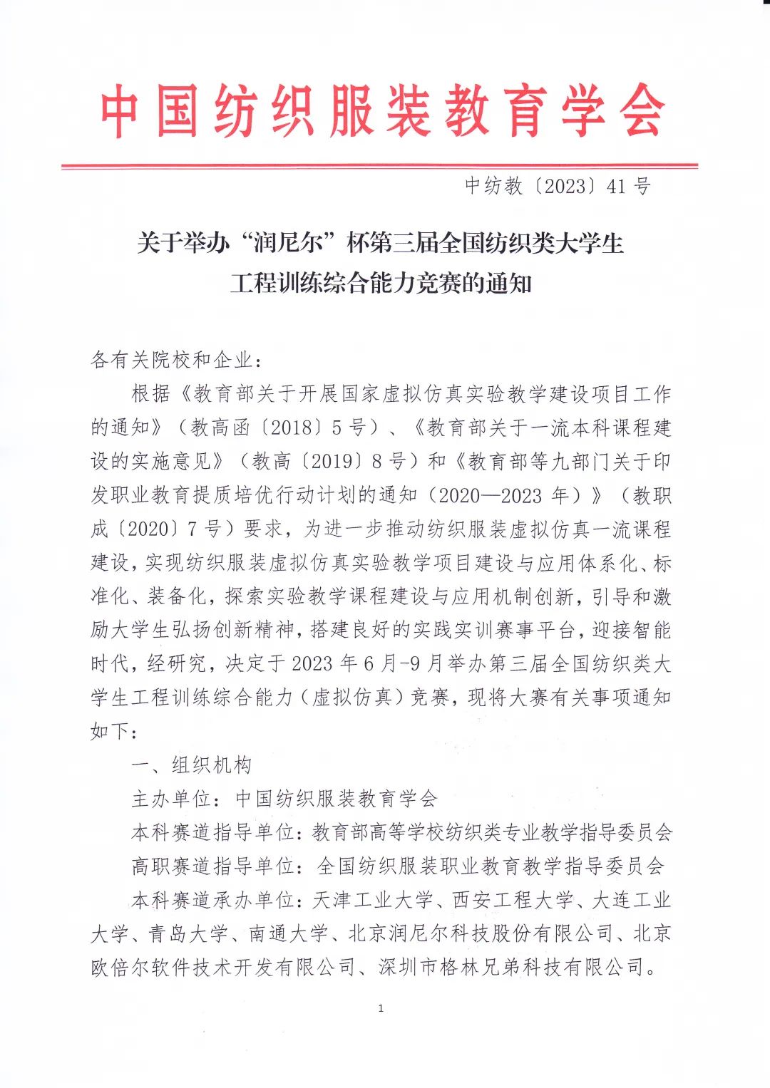 关于举办“润尼尔”杯第三届全国纺织类老员工工程训练综合能力竞赛的通知