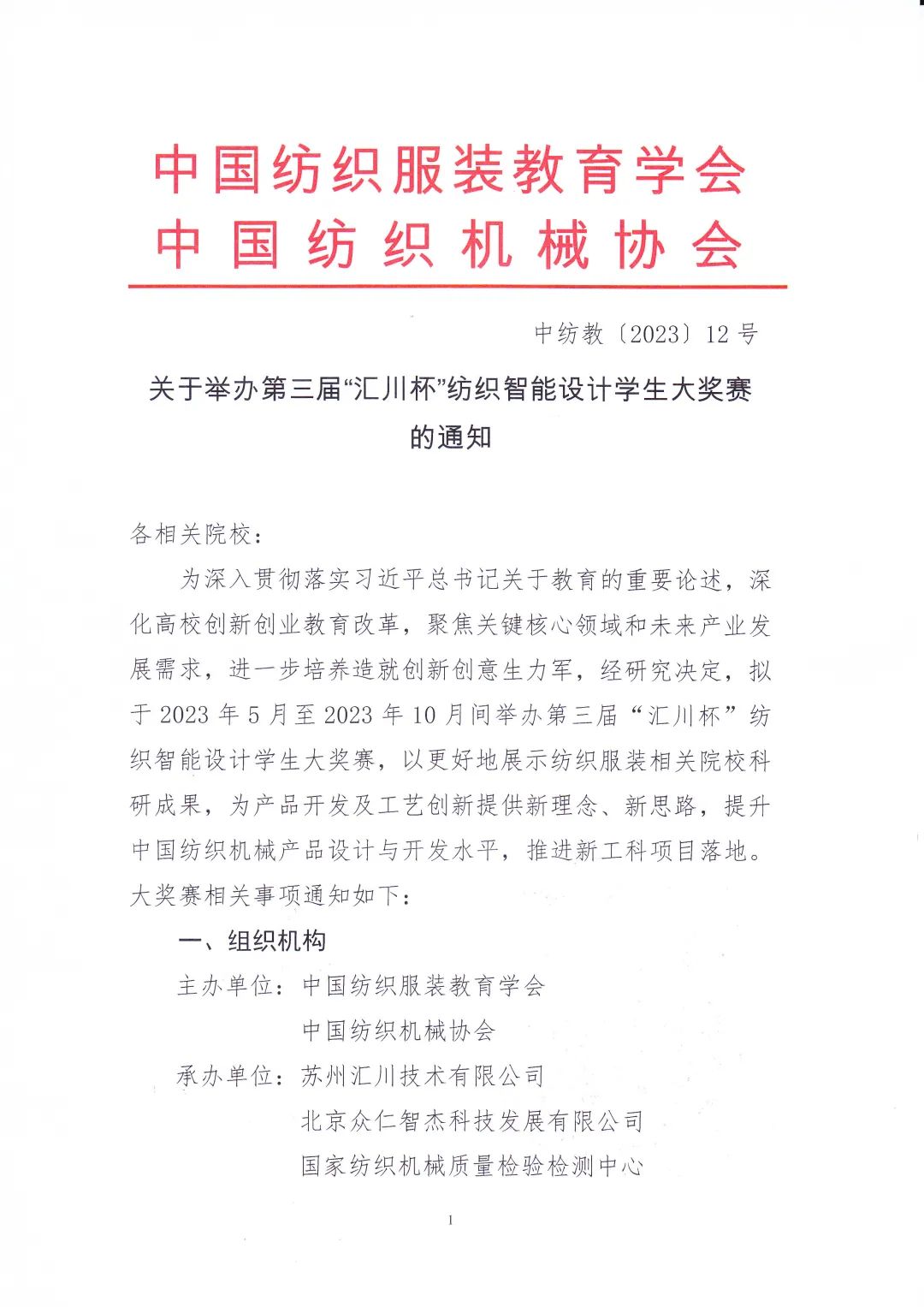 关于举办第三届“汇川杯”纺织智能设计员工大奖赛的通知