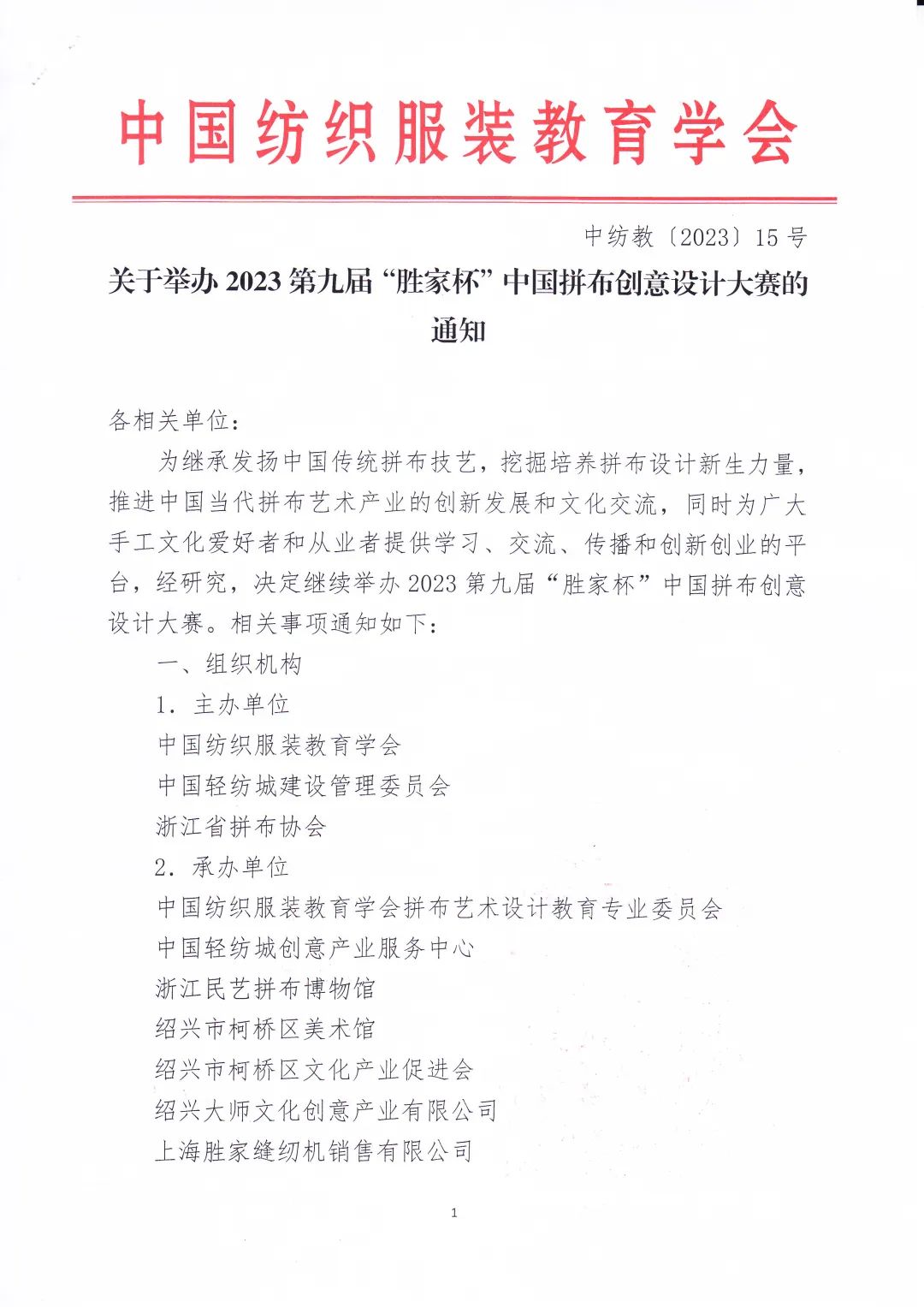 关于举办2023第九届“胜家杯”中国拼布创意设计大赛的通知