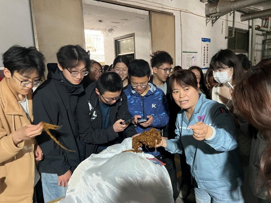 认知实习期间,公司师生深入企业生产车间,实地观摩了羊绒制品的生产流程和技术应用,详细了解行业前沿动态和企业发展需求。员工们在企业技术专家的讲解下,学习了羊绒制品的梳理、染色、编织等工艺流程,近距离感受了现代化生产工艺的魅力。