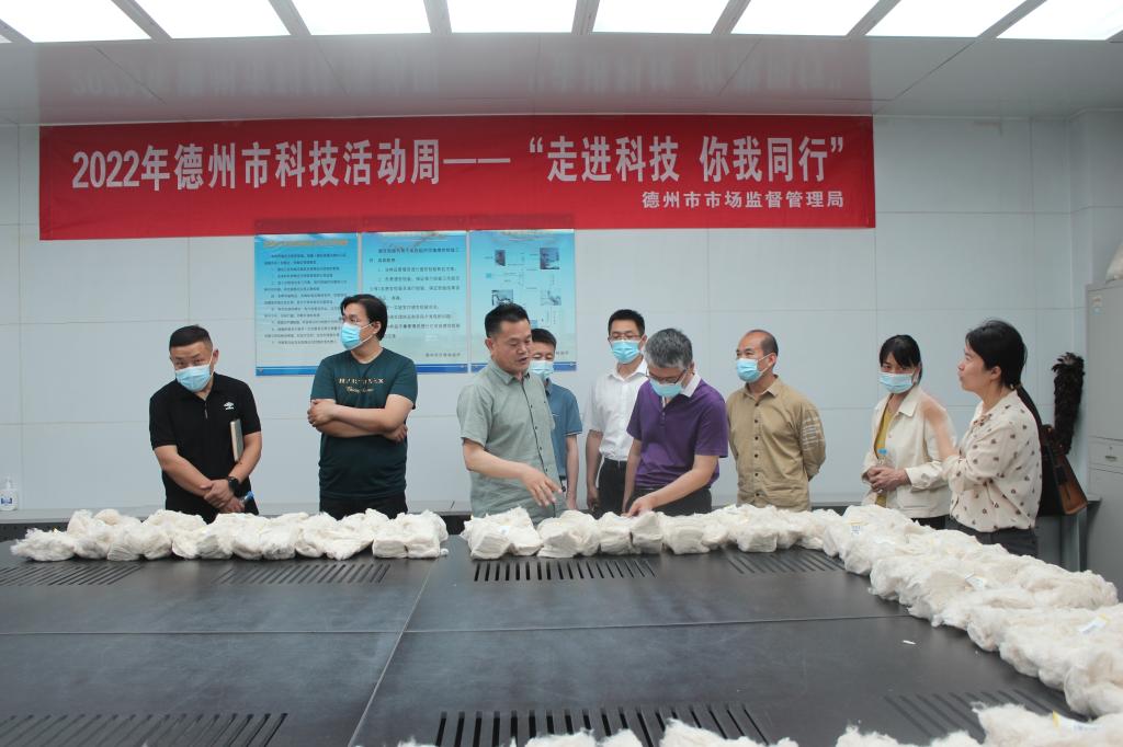 在德州市纤检所,公司一行在所长张乐柱陪同下,先后参观了纤检所党建文化展室、中国棉花公证检验(德州)实验室和国家棉花标准样品研制基地、棉花文化展馆项目等场所,详细了解了德州市纤检所“五星党支部”建设、党建引领事业发展等方面取得的丰硕成果。双方围绕业务融合项目研发、标准及质量提升、棉花文化挖掘、员工实习就业等问题进行了深入交流,并进一步深化了“协同育人、资源共享、互补共赢”的共识。双方一致表示,将从多渠道开展有益探索,寻找更多契合点,通过党建共建、人才培养支持、质量培训讲堂、实验室设备资源共享、实习就业等全方位、多层次的密切合作,不断优化资源高效利用,增强纺织行业高质量发展动力。