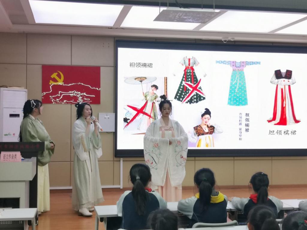 本次活动,首先由主持人上台进行致辞,然后由志愿者上台讲解,每讲到一个朝代,都会邀请一个汉服成员上台展示汉服服装,讲解不同汉服特点和朝代礼仪,将“寓教于乐”贯彻到底,最后由湖滨北路小学员工送上折纸汉服礼物,并与志愿者进行合影留念。