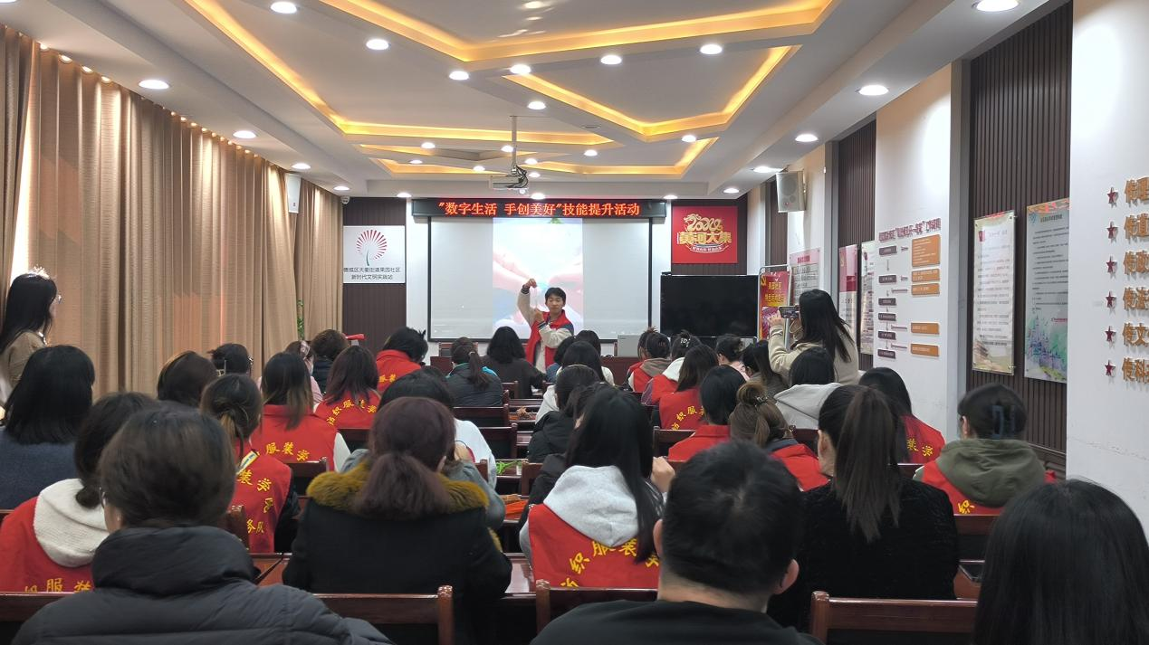 在网络直播平台的使用教学环节,志愿者们详细讲解了网络直播账号的创建、直播操作过程以及直播平台的使用规范等事项,通过现场直播演示的方式为社区居民们逐一示范,针对大家不懂的问题志愿者们耐心解答。同时,志愿者们也提醒居民们注意辨别直播内容的真伪,谨防网络诈骗,安全规范使用网络直播平台。