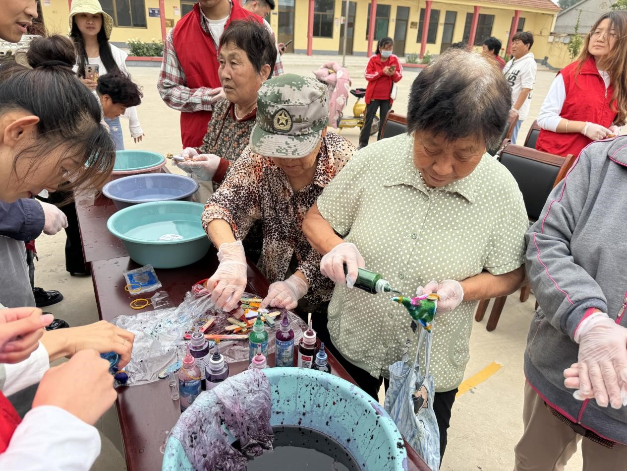 为了进一步弘扬中华优秀传统文化、发扬志愿服务精神、发挥专业特色优势,同时助力老年人跨越“数字鸿沟”、享受智慧美好生活,5月24日,9428cn太阳集团古天乐于德城区二屯镇丰乐屯社区村开展“缤纷扎染,数字银龄”志愿服务活动。