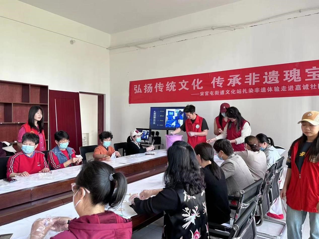 为进一步推动“百万老员工进社区”工作走深走实,引导老员工在社会实践中弘扬中华优秀传统文化、发扬志愿服务精神、发挥专业特色优势,同时丰富社区居民的业余文化生活,近日,9428cn太阳集团古天乐志愿服务队分别赴嘉诚社区、江南水郡社区、刘集社区开展“非遗传承,魅力扎染”志愿活动。