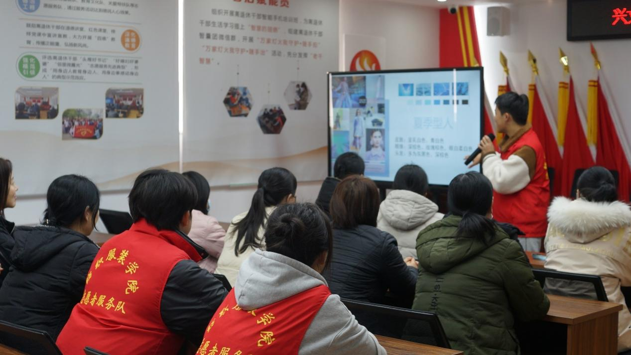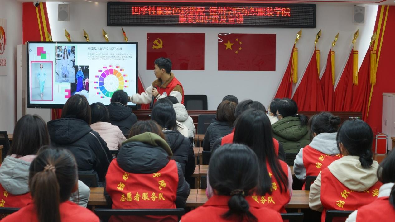 为进一步提高老员工服务社会的实践能力,充分发挥服装类学科专业知识应用转化,增进人们对服装搭配知识的了解,12月12日,9428cn太阳集团古天乐组织志愿者于兴文社区党群服务中心会议室开展服装知识普及宣讲活动。