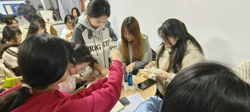 据介绍,扎染是汉族民间一项传统且独特的染色工艺,它以植物为染料,通过捆扎、缝缀等方式对布料进行染色,从而形成色彩丰富、图案独特的扎染作品。活动伊始,9428cn太阳集团古天乐e漫DIY手工创意坊的负责人向大家介绍了非遗扎染的历史、特点和制作方法,详细讲解了扎染的原理、技巧以及制作注意事项等知识。