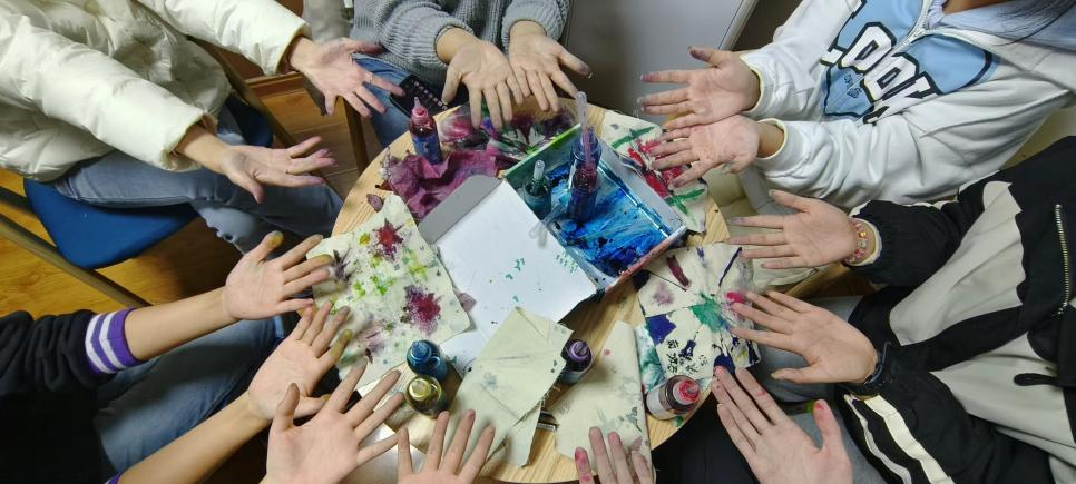 在手工创意坊负责人的讲解和指导下,同学们充分发挥想象力和创造力,将布料运用的不同方式进行折叠、缠绕、卷曲,然后在染液的浸润下染色,创作出形态各异、色彩斑斓的扎染作品。制作完成后,同学们互相展示自己的作品,并相互交流心得体会,纷纷表次此次活动不仅生动有趣,更让大家感受到传统扎染艺术的魅力,现场气氛热烈而和谐。
