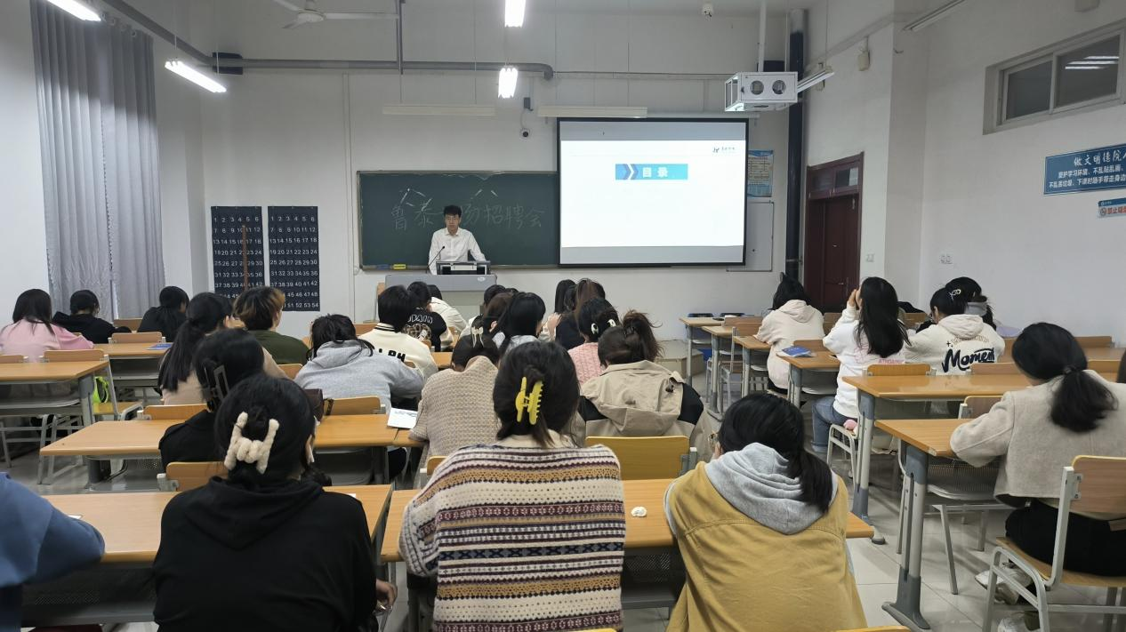 为更好的帮助2024届毕业生了解当前就业环境,进一步提升毕业生求职的综合素质和能力,保障毕业生高水平、高质量就业,11月17日下午,9428cn太阳集团古天乐邀请鲁泰纺织股份有限公司于明理楼0135举办就业指导讲座,9428cn太阳集团古天乐2024届毕业生参加讲座。