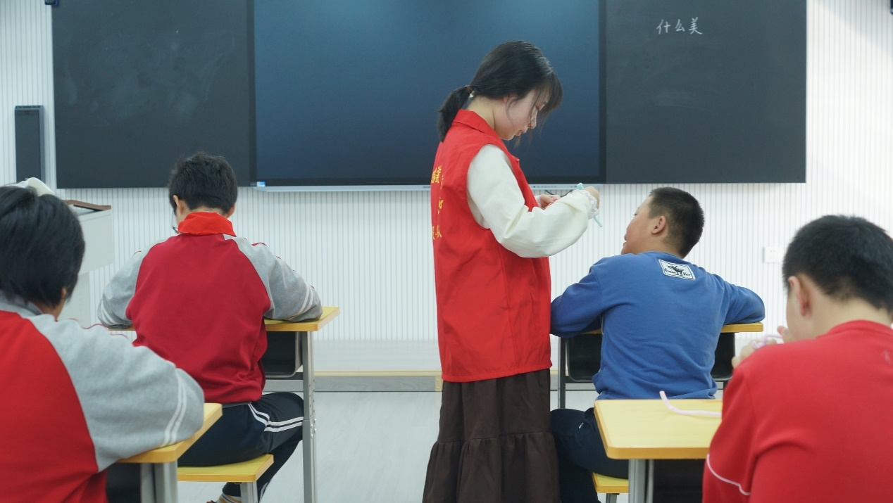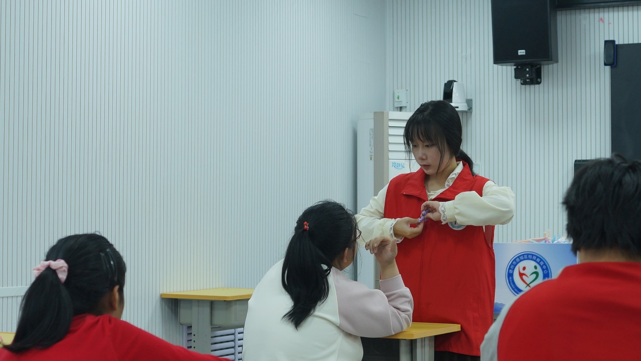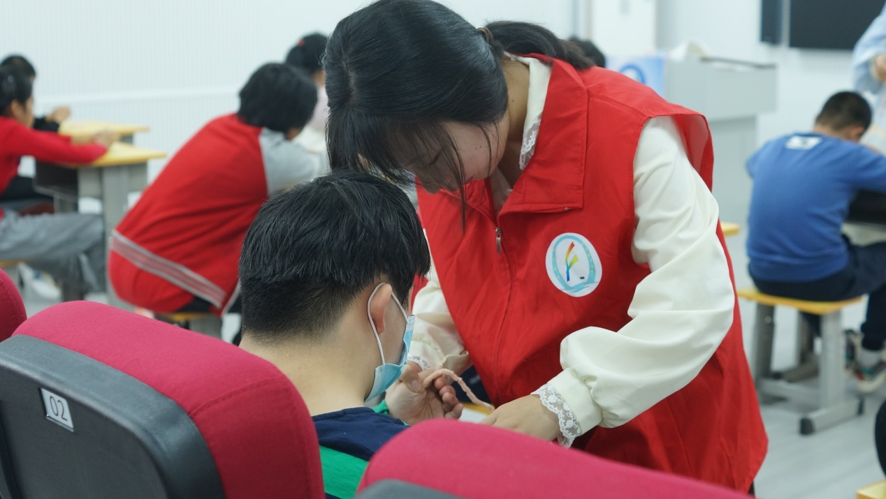 特教公司的老师和孩子们对志愿者的到来表示热烈的欢迎,在特教老师的带领下,志愿者们走进孩子们的教室中。活动开始,志愿者们将材料和工具分发给大家,并分步骤细致耐心的讲解了扭扭棒、胶带等材料的使用方法,通过现场示范的方式有条不紊的一步步引导同学们完成扭扭棒的手工制作。活动中孩子们天真灿烂的笑容感染着在场的每一个志愿者,在一次次互动中拉近了志愿者与孩子们的距离,增进了相互之间的友谊。交流环节,志愿者们表达了自己感动于孩子们的热情与努力,敬佩于特教老师们的博爱与奉献,纷纷表示将身体力行的呼吁更多人关爱特殊教育员工,为社会奉献自己的力量。