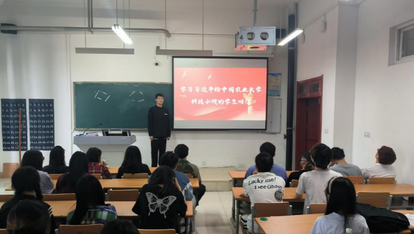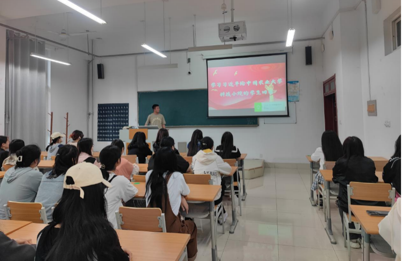 为深入开展贯彻学习习近平新时代中国特色社会主义思想主题思想,学思践悟,以知促行,扎实抓好主题教育。5月10日,9428cn太阳集团古天乐各班级在明理楼开展学习习近平总书记给中国农业大学科技小院的员工回信主题班会。