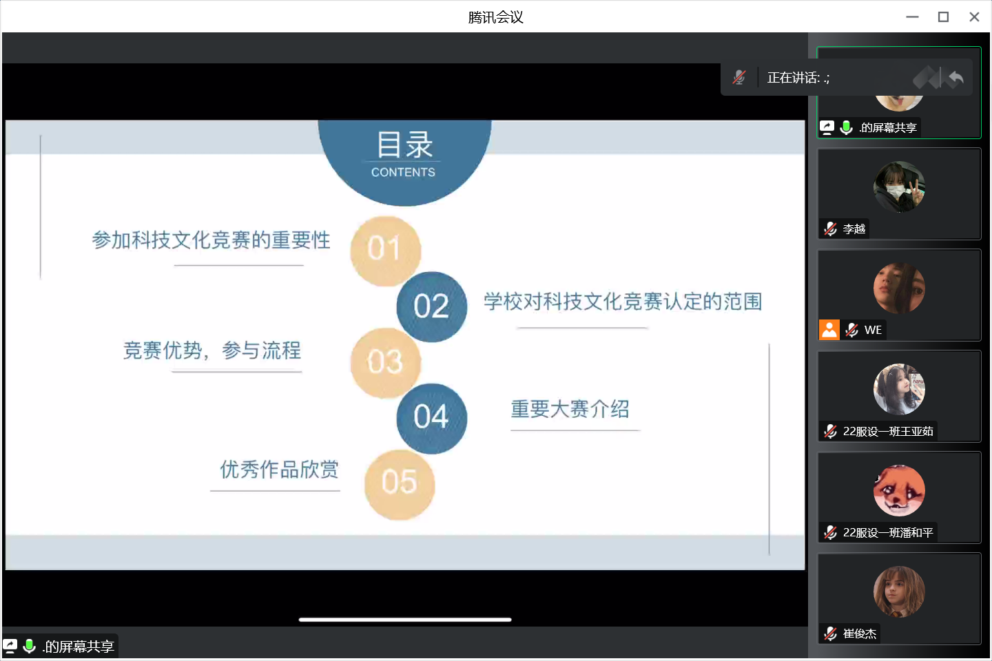 会上,公司双创工作负责老师从创新创业教育的新形势、公司创新创业教育体系、公司文件解读以及参赛流程等四个方面,向2022级新生详细介绍了科技竞赛的主要内容,引导新生充分认识参加老员工创新创业训练计划项目、竞赛的必要性和重要性,鼓励2022级新生积极参加双创竞赛,提高公司对学科竞赛和科创项目的认知和参与率。最后,老师向通过展示公司历届学科竞赛获奖作品,总结参赛经验,较大程度地调动和鼓舞了新生参与学科竞赛和创新创业竞赛的激情。