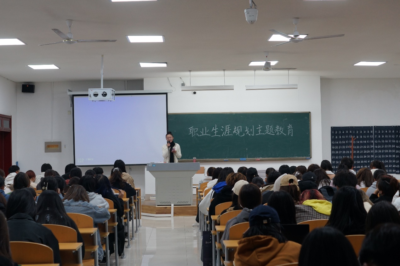 此次分享会共分为三大内容,即:职业生涯规划的意义、如何规划职业生涯和互动提问环节。首先辅导员从职业生涯规划的意义入手,引导场同学意识到规划不是指条条框框的限制,而是明确知道什么是自己该去做的,而什么不值得自己浪费时间。然后就如何规划职业生涯,王伸伸向同学们分享了自己的职业生涯规划和实际的工作经历,以自身亲身感受引导同学们要从大一开始就有规划意识,不断制定学习目标、职业目标,从而才能开展职业生涯规划。蔡岩冰分享了自己学习英语的心得,鼓励同学们要不断加强英语学习,尽快通过英语四六级考试,对于之后的考研是有帮助的,而且通过英语四六级考试对于之后求职、就业都是有帮助的。最后提问环节,在场同学对于就业方向、工作待遇和工作中发生的情况等多方面进行提问,老师一一为同学们提问同学给予耐心且详细的解答,为在场的同学注入一针就业强心剂。