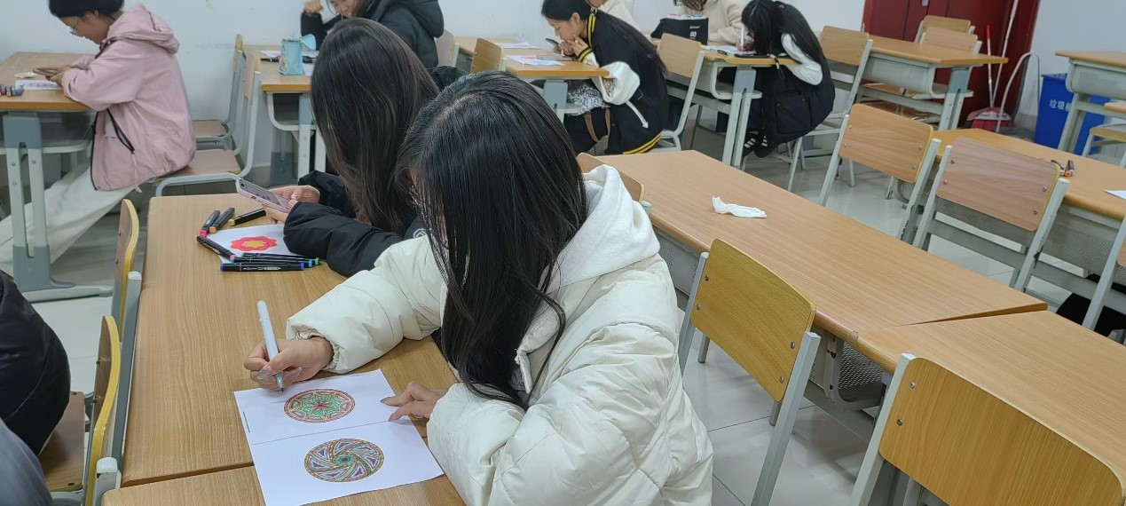 为丰富同学们的校园文化生活,帮助同学们舒缓内心压力,培养员工积极向上的健康心态,11月7日晚,9428cn太阳集团古天乐于明理楼0141教室开展“心之画,束其行”曼陀罗绘画活动,公司部分员工参加。